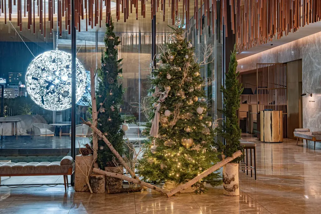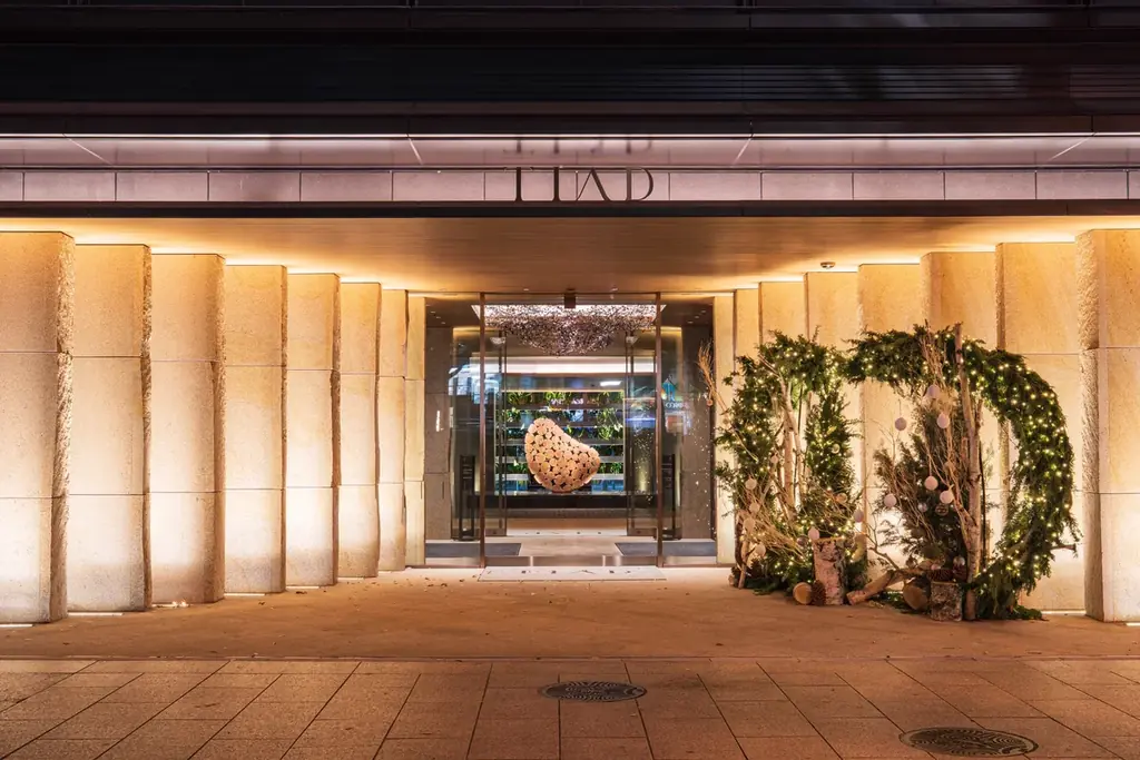 今回のデコレーションは開業から3回目のクリスマス開催となり、エントランスやロビーなどのパブリックエリアでは、ホテルを利用しない一般の来訪者も観覧可能です。館内はビオフィリア(自然を愛する心)を意識したデザイン表現と光の演出を組み合わせ、写真撮影に適した見栄えを重視しています。