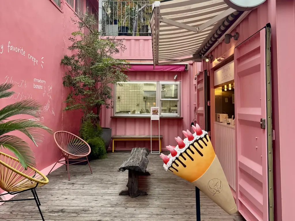 店舗コンセプトは「ポップでかわいいピンクの世界観」です。店内には写真撮影に適した演出が散りばめられ、クレープを味わうだけでなく視覚的な体験も同時に提供する体験型スイーツスポットとして設計されています。
