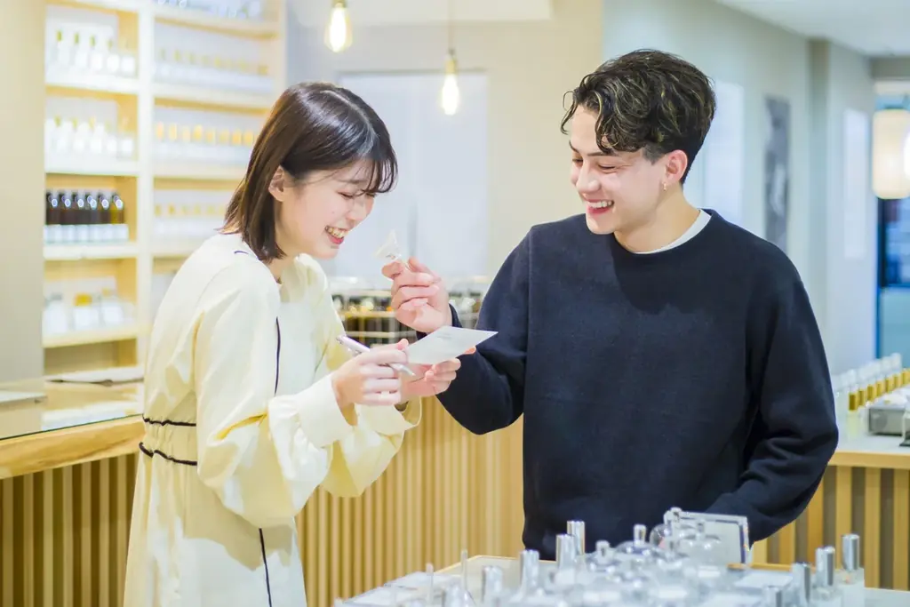 実際の利用手順は分かりやすく設計されています。チケットを持参して店舗に行くと、フレグランスアドバイザーが同行し、1億1043万通り以上の組み合わせからオーダーメイドで香りを調合します。店舗での体験を通じて「世界に一つだけ」の香りが完成します。