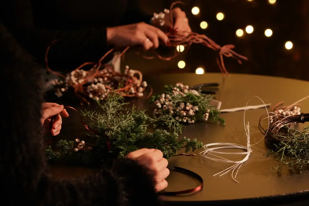 TRUNK(HOTEL)のフラワーデザインチームが実施するワークショップでは、クリスマスからお正月にかけて飾れる季節のフラワーアレンジメントを制作します。お子さまから大人まで参加可能で、所要時間は短めに設定され参加しやすい構成です。