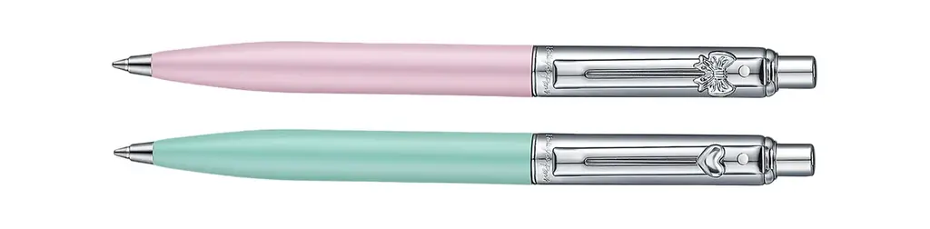 万年筆はスチール(F)ペン先を採用し、両用式の仕様でコンバーターとカートリッジが付属します。ボールペンはスムースなツイストアクションで、日常のあらゆる筆記に対応します。いずれもリングにはダブルネームの刻印が施され、スペシャルボックスで提供されます。