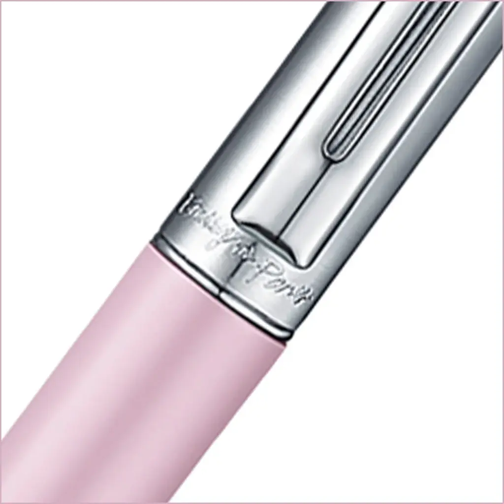 コンパクト設計のミニサイズボールペン。日常の携帯性を重視しながら、パリらしい色調とディテールで仕上げられています。柔らかなパステルピンクのラッカーにローズゴールドPVDトリムを組み合わせ、天冠にはスワロフスキー・クリスタルが施されています。