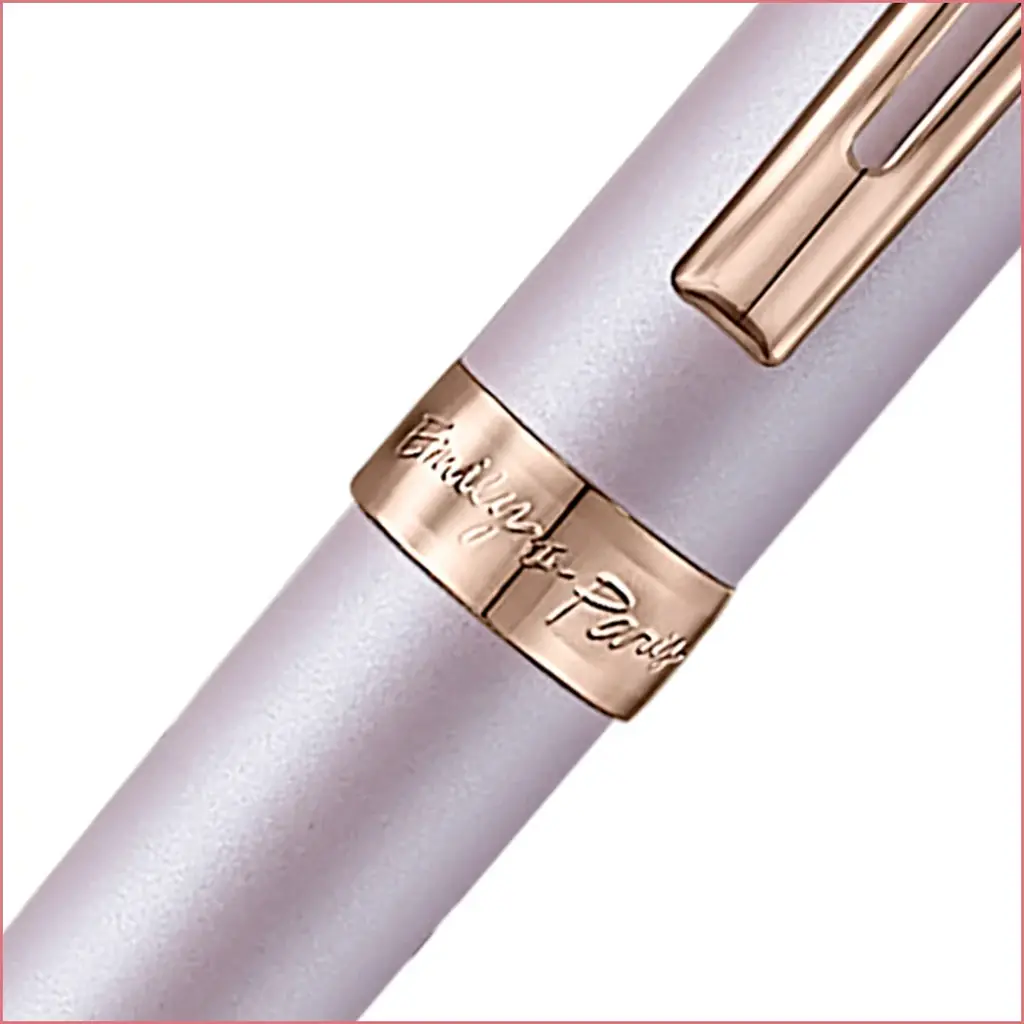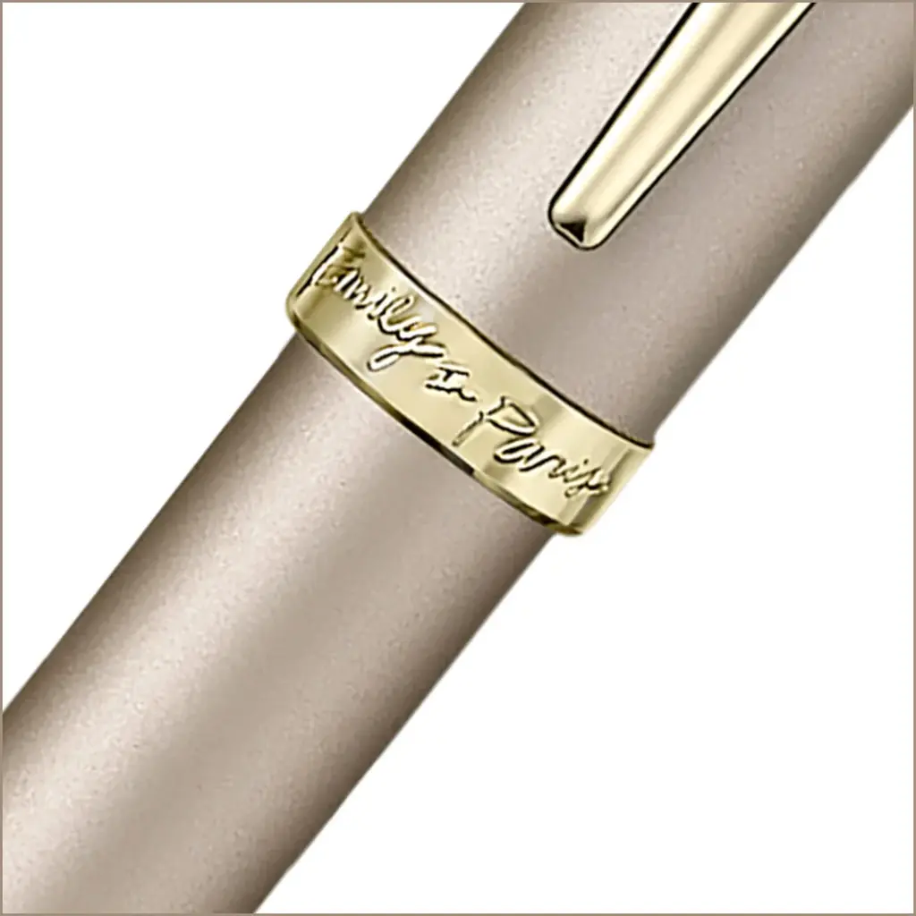 定番モデル「シェーファー100」をベースにした特別仕様。シャンパンゴールドトーンのラッカーとトリムにより、控えめで上品な光沢を持つ仕上がりです。クリップにはリボン型エンブレムがあしらわれ、天冠にはエッフェル塔のモチーフが配されています。