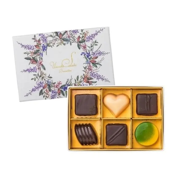 エレガント6A(6個入) — 3,348円。ブリュッセルで2007年から専門店を構える佐々木靖氏による、ビジュアルとフレーバーのバランスを重視した6種のアソート。