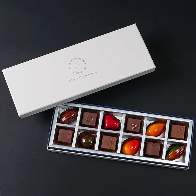ボンボンショコラアソート(12個入) — 6,000円。外資系ホテルなどでの経験を持つオーナーパティシエ山田隼人氏による、フルーティなものからミニマルなチョコレートまで揃うアソート。