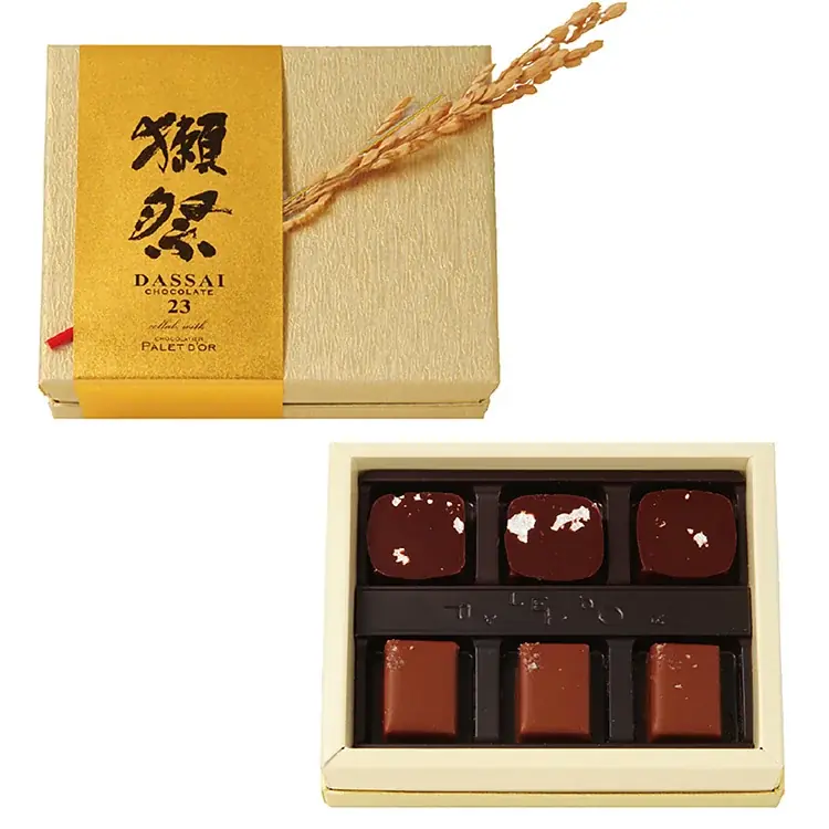 獺祭ショコラ(6個入) — 3,240円。シェフ三枝俊介氏創設のショコラティエによる、日本酒「獺祭 純米大吟醸 磨き二割三分」を用いたショコラの詰め合わせ。