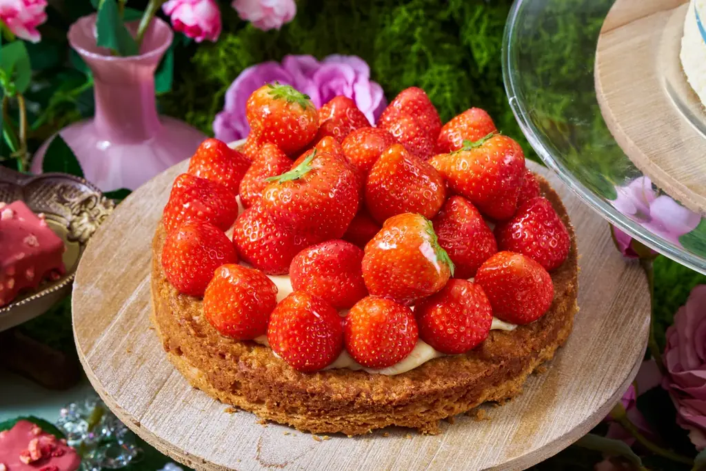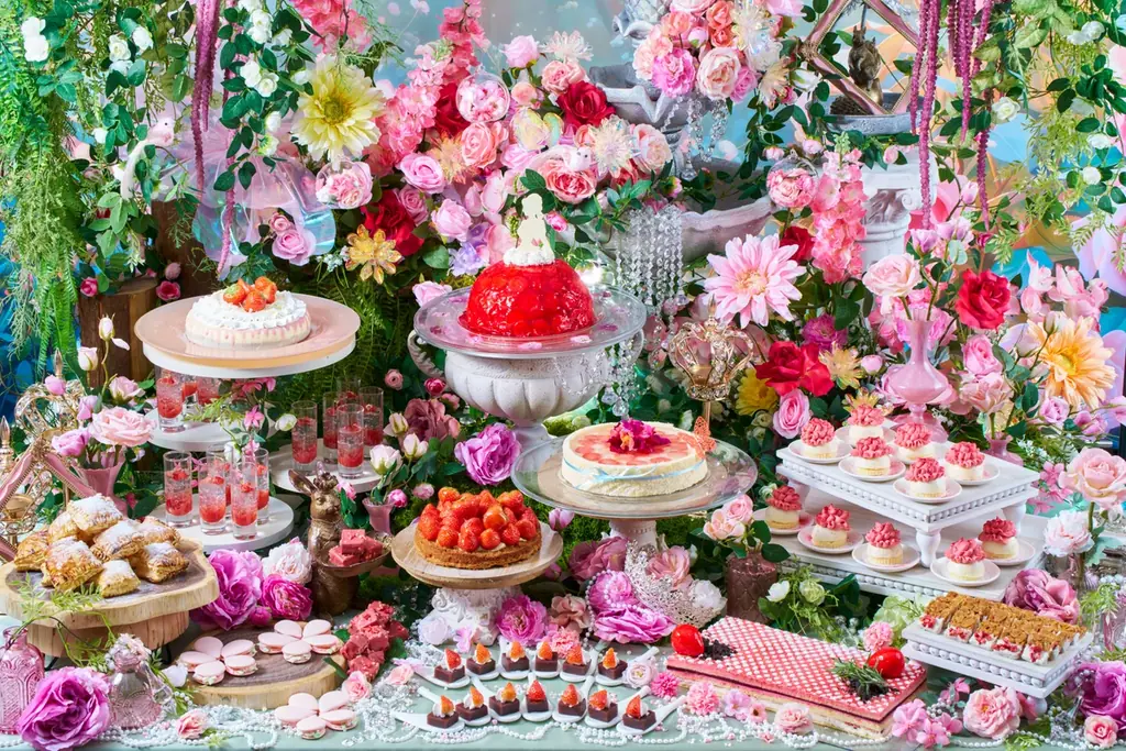 本フェアはグリム童話『眠れる森の美女』に着想を得ており、呪縛が解けた後の優しい春の陽光に包まれた宮廷庭園を演出します。色とりどりのいちごスイーツと香り豊かな料理が並ぶ場は、物語のプリンセスが目覚めた祝宴のように設えられています。来場者は、光と甘い香りに囲まれた空間で、非日常のランチタイムを過ごせることが想定されています。