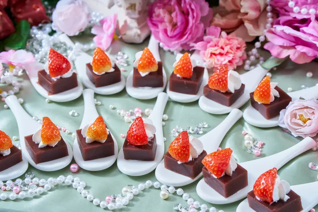 • 和の極み: いちごを飾った甘さ控えめのあんこ羊羹。洋菓子中心のラインナップの中で、和のテイストを織り交ぜる役割を果たす。