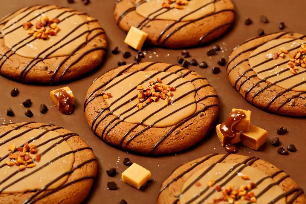 - ココアクッキー生地+チョコチップ、キャラメルソース封入、ゲランドの塩トッピング、直径13cm、900kcal超