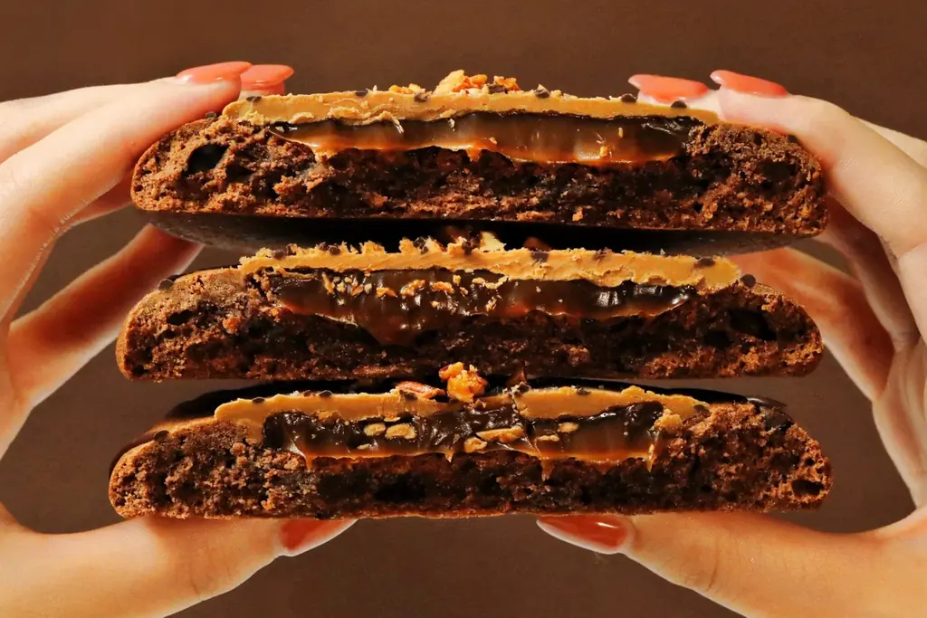 ビッグソフトクッキー専門店「GUILTY’S(ギルティーズ)」からは新フレーバー『メルティキャラメルチョコ』が登場する。本商品は直径13cmのビッグソフトクッキーで、しっとりとしたココアクッキー生地にチョコチップを混ぜ込み、中にとろりとしたキャラメルソースを閉じ込めている。
