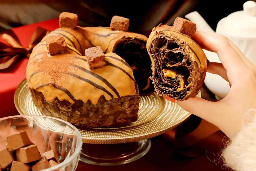『生チョコキャラメルリング』は、ブラックココアを練り込んだデニッシュ生地でキャラメルクリームを包み、表面にキャラメル風味の上掛けチョコを重ね、仕上げに生チョコをトッピングした商品である。ほろ苦いブラックココアと香ばしいキャラメル、生チョコの口当たりが重なる“チョコづくし”の味わいが特徴だ。