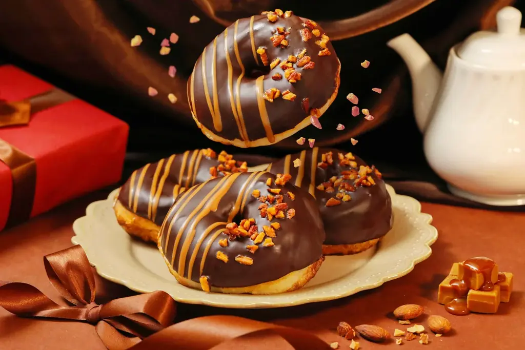 累計販売数140万個(2024年7月〜2025年10月の社内集計)を突破した『ふわとろ生ドーナツ』の期間限定フレーバー『チョコナッツ』が登場する。国産小麦を使用した“ふわっ、とろっ”の生ドーナツ生地にチョコアイシングとキャラメルソースを重ね、ザクザク食感のナッツをトッピングしている。