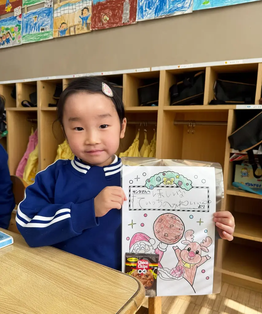 作成されたメッセージカードや作品には個性が表れており、色使いやメッセージ内容に園児それぞれの興味が反映されました。最も人気のあったメッセージは「スイッチ2がほしいです」だったと記録されています。ほかにも「クッキーが地球みたい」「トナカイの鼻は赤?オレンジ?」といった発想があり、自由な表現が見られました。