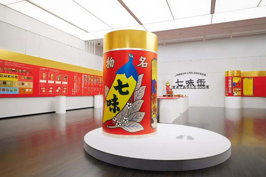 CEVEN LABの受賞に加えて、2024年4月に行われた「七味缶百周年記念展 ~食卓であゆんだ100年~」も日本サインデザイン賞の入選に選ばれています。本展は「七味缶の解剖」をテーマに、歴史、素材、デザインの観点から小さな缶に込められた要素を分かりやすく提示しました。