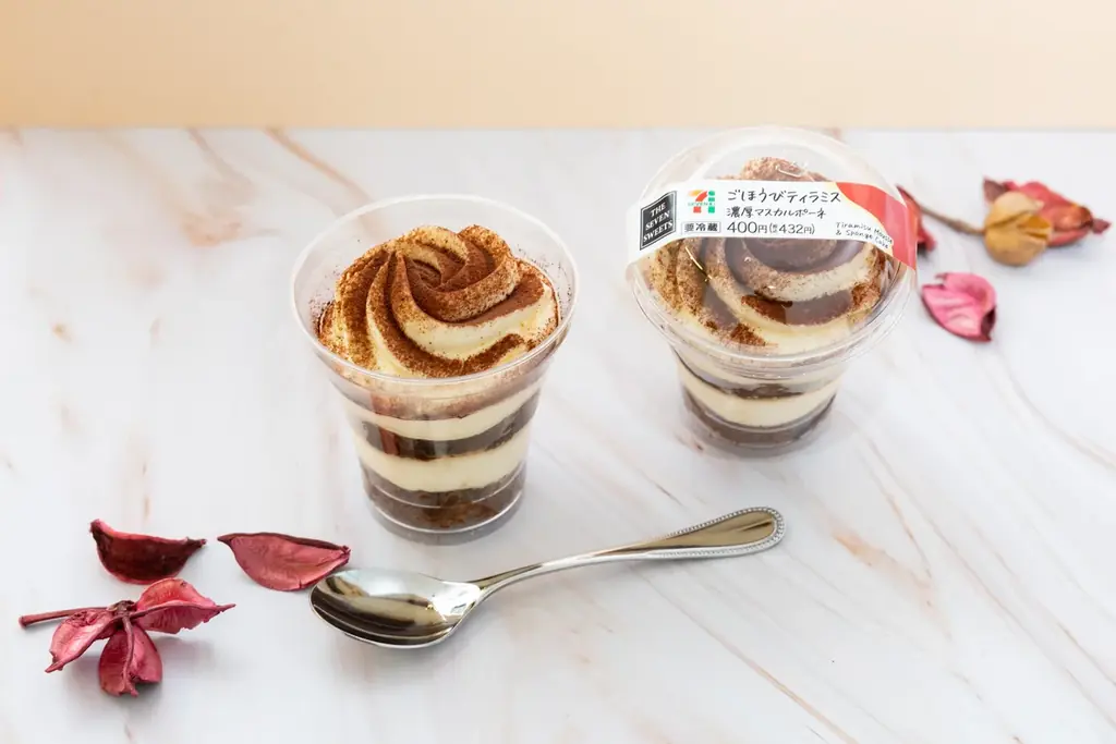 ごほうびティラミス 濃厚マスカルポーネ 400円(税込432円) 12月11日(木)~順次 沖縄県除く全国 北海道産マスカルポーネ使用。セブンカフェ豆で抽出したコーヒーシロップ採用。