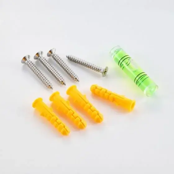 壁面取り付けは付属のネジで行います。付属のネジにより石こうボード壁やコンクリート壁など様々な壁面にしっかり取り付け可能とされています。取り付け時には壁材の種類に応じた下地処理や工具の使用に注意してください。