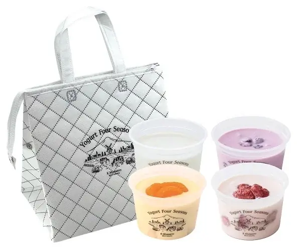 - ヨーグルト フォーシーズンズ/ニューイヤーヨーグルトバッグ(限定50袋)1,620円。プレーン加糖、いちご、ブルーベリー、みかんの全4種をセットにした商品。