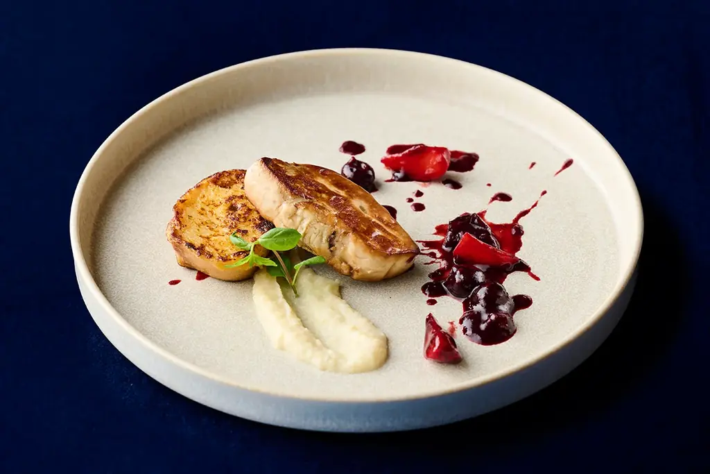 - フォアグラのポワレ、フレンチトースト、ベリーソース