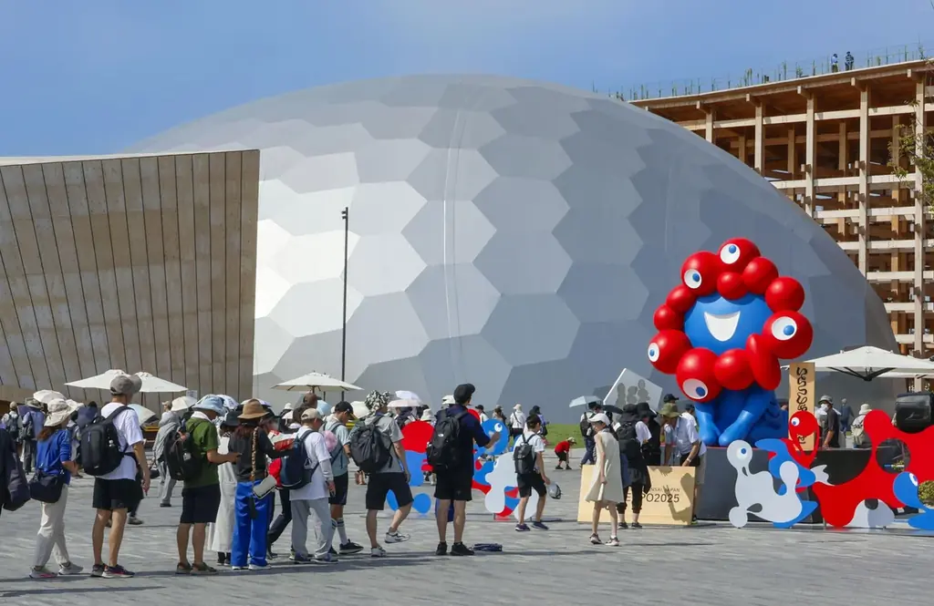 - 万博が開幕し、来場者を迎える公式キャラクター「ミャクミャク」(2025年4月13日)