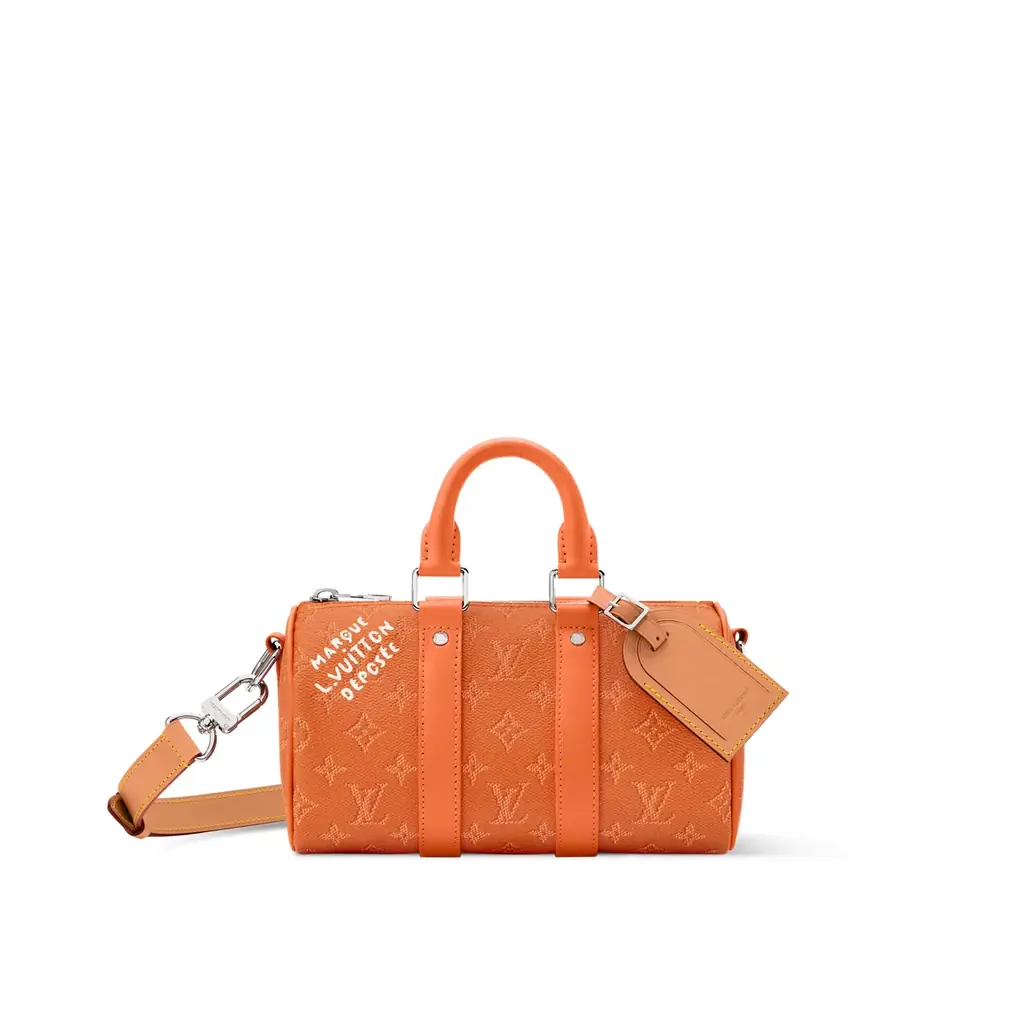 「Marque L. Vuitton Déposée」のシグネチャーが際立つモデルで、鮮やかな色合いが装いに華やかさを添えます。外観はクラシックなキーポルのフォルムを受け継ぎつつ、モダンなストラップ使いによってデイリーに合わせやすい仕様になっています。
