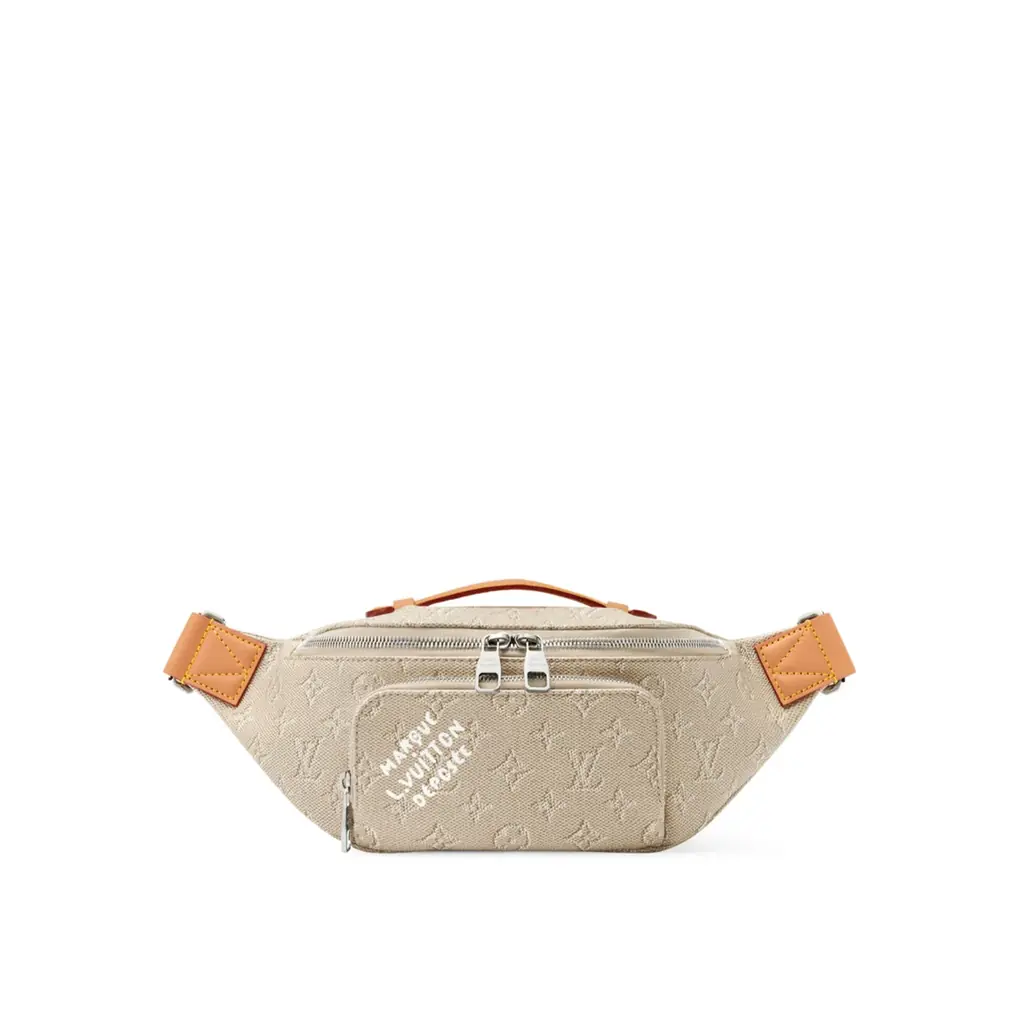 ファレル・ウィリアムスによって再解釈された「Marque L. Vuitton Déposée」シグネチャーが特徴的なウエストバッグ(バムバッグ)です。フロントのファスナー式ポケットとメインコンパートメントは毎日の必需品の出し入れをスムーズにします。
