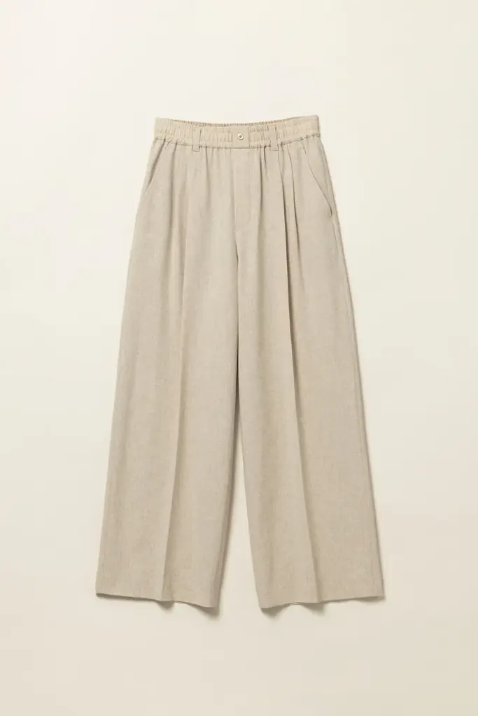 脚をすらりと見せるワイドシルエットのパンツ。程よいボリューム感により楽さとスタイルアップを兼ね備えた設計です。