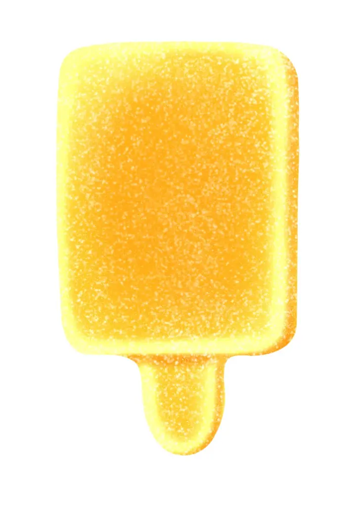 もう一つの重要な工夫は、グミ表面を結晶化させることで実現したシャリシャリとした食感です。アイスキャンディー特有の氷の粒をイメージした食感を、グミの外観と口当たりで表現するための加工が施されています。