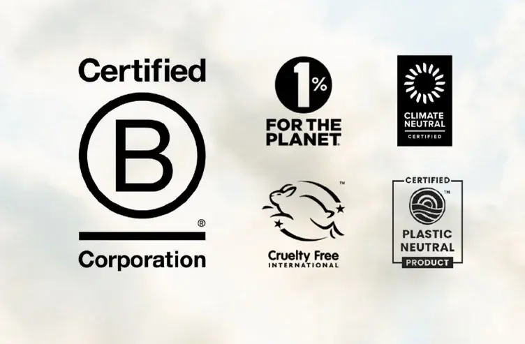 INNERSENSEは持続可能な栽培や倫理的な収穫、透明性の高い調達方法を満たした天然成分を採用するとともに、リサイクル可能な容器を選択しています。さらに、取得が難しいとされる認証として「B Corp」やカーボンニュートラル、動物実験フリーなどの認証を得ており、チャリティ団体への寄付など社会的責任を果たす活動にも取り組んでいます。
