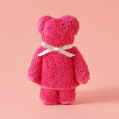 セットの構成と細部──タオルベアとトラベルサイズのヘアケア