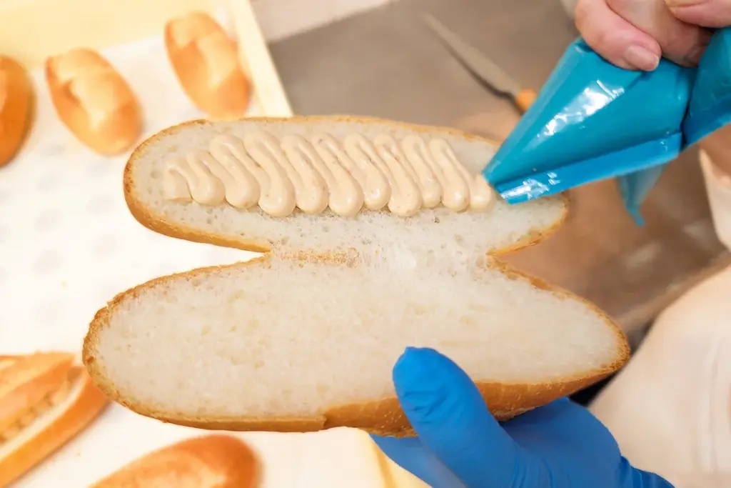 製法の要点としては、一本ずつピーナッツバタークリームを丁寧に絞り、紙の帯を巻いて提供される点が挙げられる。クリームは滑らかな口当たりの中に小さなピーナッツの粒が混ざり、食感の変化も楽しめる。