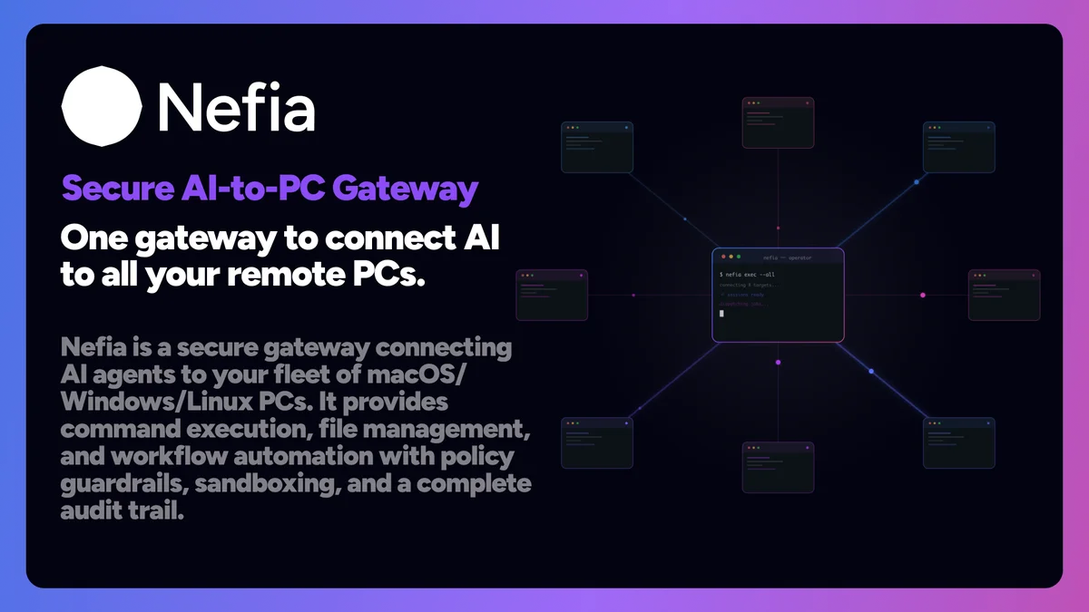 • Nefia:AIエージェントでリモートPC群を操作するセキュアゲートウェイ(公式:https://www.nefia.ai/ja)