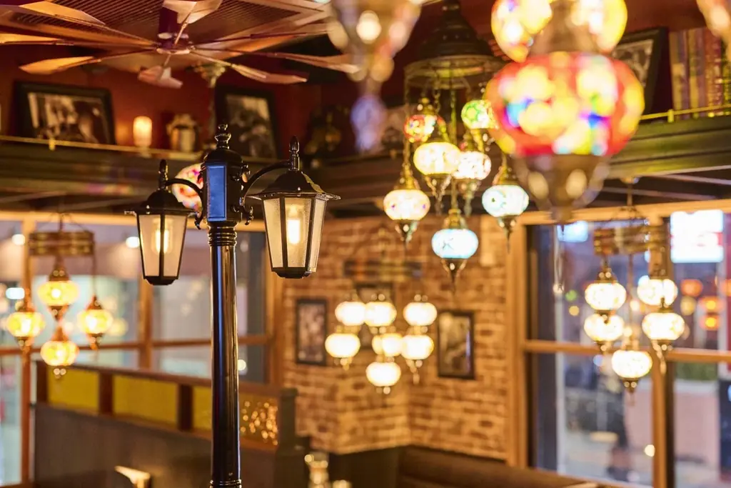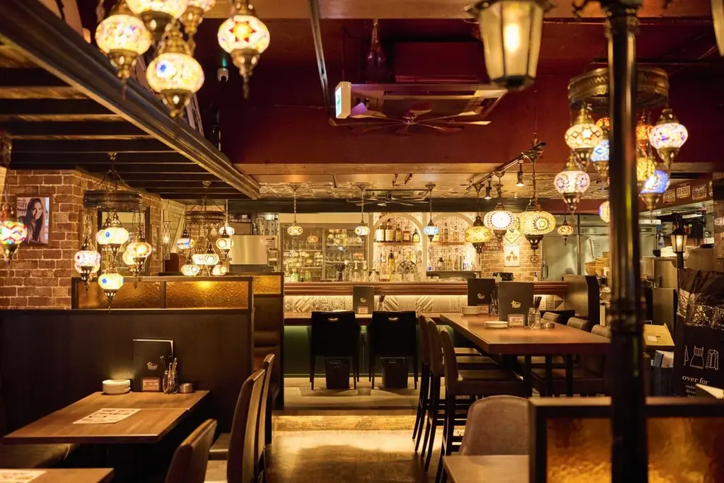 店内はトルコランプの温かい光がアクセントになっており、レンガ壁などの内装が統一感を出しています。これにより、カジュアルな飲み会からデート、少人数での食事など、さまざまな利用シーンに適した雰囲気を作っています。