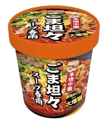 | 海底撈 ごま担々スープ春雨 | 250円(税込270円) | 4月14日(火)~順次 | 全国 | 濃厚な練りごまのコクと花椒の痺れ。チンゲン菜、パクチー、とうもろこし、湯葉、ねぎ、唐辛子がアクセント。 |
