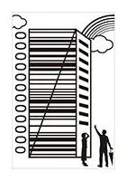 - 虹が出ている様子を描いたバーコードで、視覚的なアイコン性を持たせる
