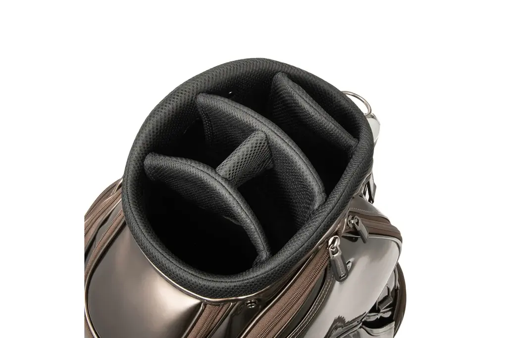 ZHG-CB PROはツアーユースを想定したプロ仕様モデルで、優れた収納力とクラブ保護機能を備えています。緩衝材を内蔵した9型5分割の口枠により、シャフト同士の干渉を抑え、クラブの出し入れがスムーズに行えます。