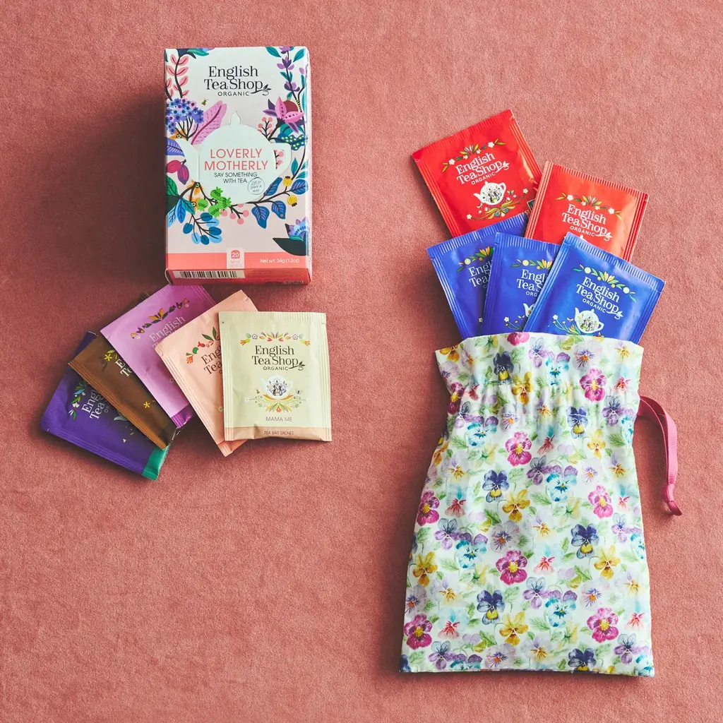 • 紅茶5種セット ¥1,080、LIBERTYプリント巾着入り紅茶セット ¥1,620