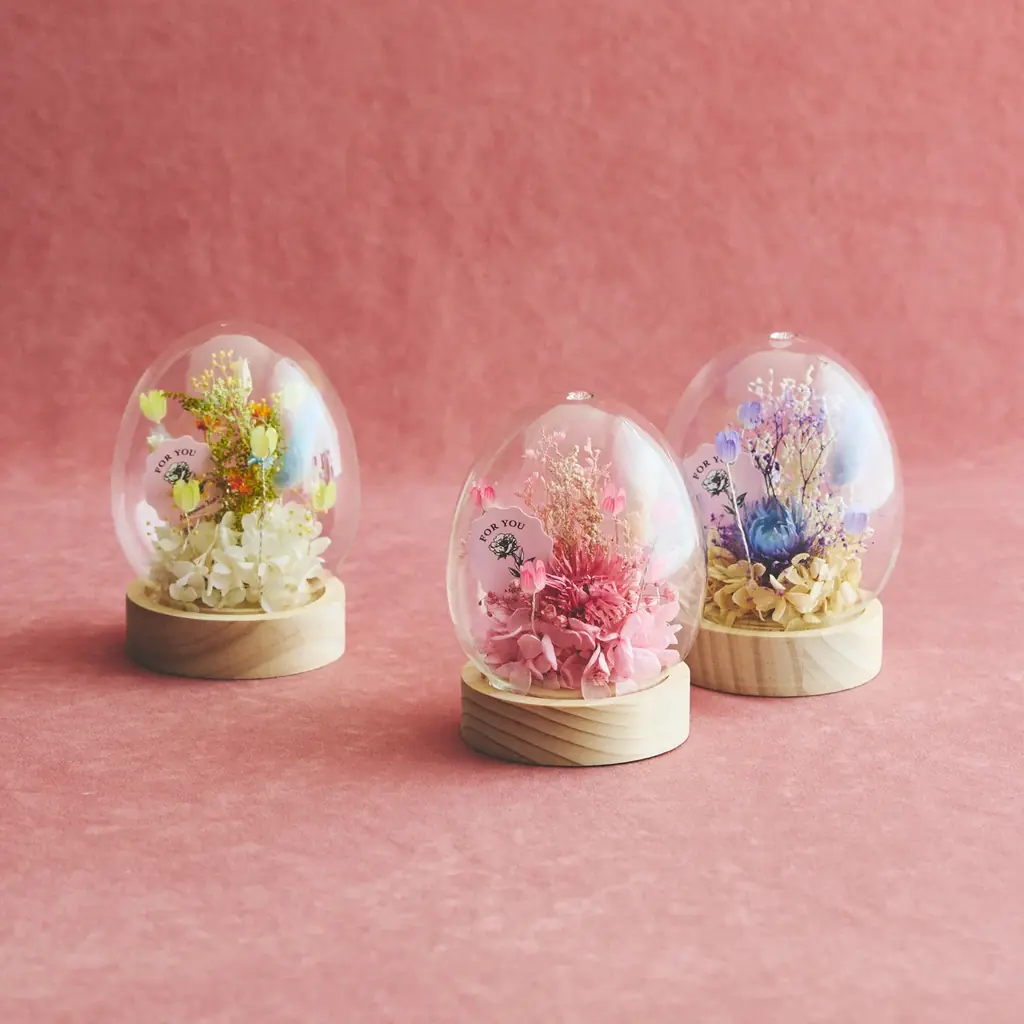 • LEDライト付きプリザーブドフラワー 各¥2,970