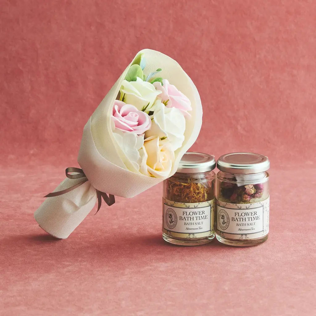 • フラワーブーケ ¥3,300、ハーバルバスソルト 各¥1,760