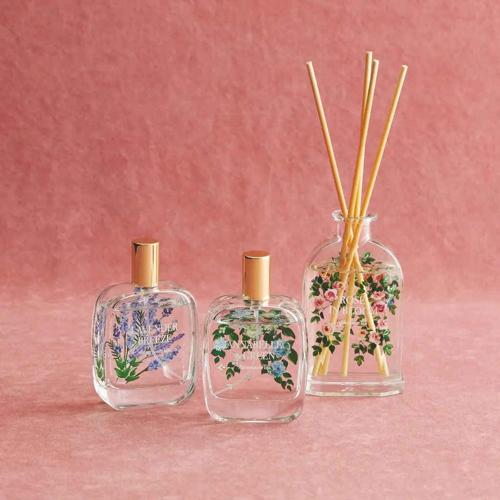 お花をあしらった華やかなデザインは玄関やドレッサーに置くだけで空間を明るくします。香りと見た目で日常の小さな癒しを提供します。