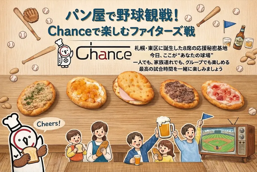 北海道札幌市東区にあるあげ焼きパン専門店Chance(シャンス)は、2026年3月27日より、パン屋で野球観戦ができるサービスの提供を開始しました。発表は2026年4月8日 11時50分に行われており、地元チームである北海道日本ハムファイターズの試合放映に合わせて、店内で観戦ができる新たな体験を地域に向けて提示しています。