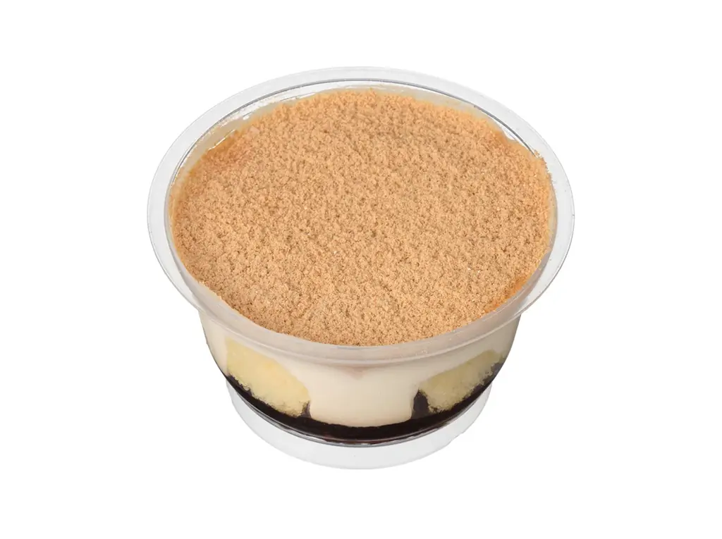 - スプーンで天面のきなこチョコを割って、中のティラミスムースと底に忍ばせたとろけるおもち・黒蜜ソースを絡めて食べる構成です。食べる工程で「パキっ」と砕けるテクスチャーと、「もちっ」とした食感、クリーミーでなめらかなムースの組み合わせを楽しめます。