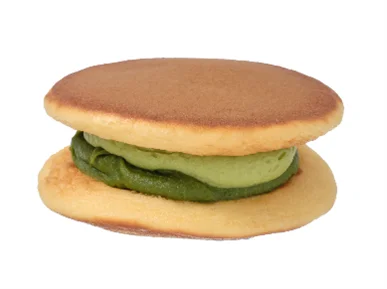 - ふんわりしっとりしたどら焼き生地で、二層に仕立てた抹茶系の餡を挟んだ商品です。上層には抹茶あんホイップ、下層には抹茶あんを配置し、抹茶の風味と旨みをしっかり感じられる構成になっています。