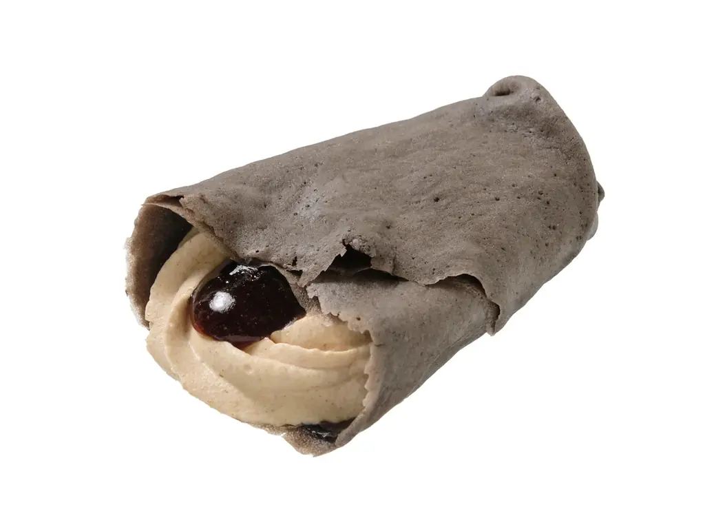 - もちもち食感のクレープ生地にお餅を組み合わせたクレープです。クレープ生地にきなこクリームを絞り、おもちを入れ、アクセントとして黒蜜ソースを加えて包むことで、和の風味と独特のもっちり感を実現しています。