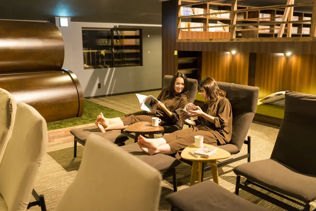 館内には約1万冊の書籍やコミックが揃うリラクゼーションスペースがあり、世代を問わずくつろげる環境が整えられています。併設のカフェレストランでは季節に合わせたメニューや信州の食材を使用した料理、ジェラートを提供しています。