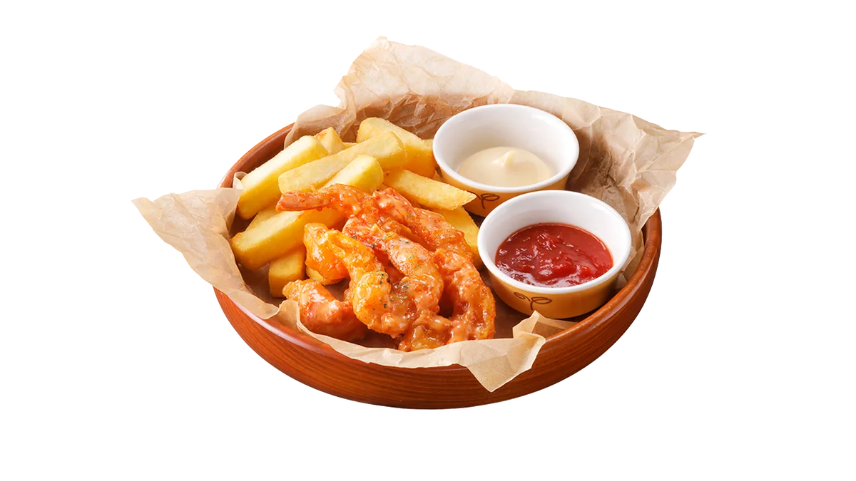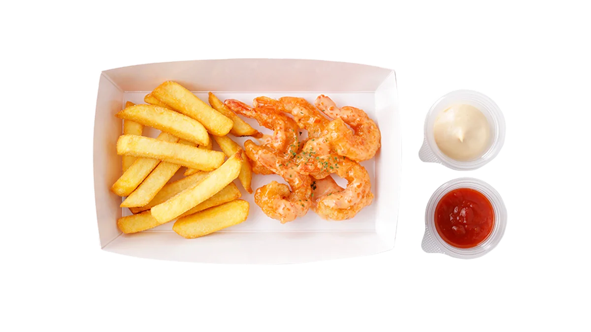 - オリジナルのオーロラソースで和えたシュリンプとフライドポテトの組み合わせです。お好みにより定番のトマトソースやオリジナルマヨネーズタイプも選べます。