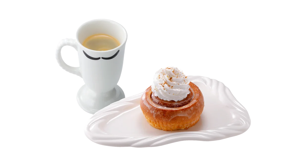 - シナモンロールに自社焙煎のこだわりコーヒーがセットになった商品です。モーニング時間帯には、モーニングドリンクと組み合わせた「シナモンロールセット」を選択可能です。