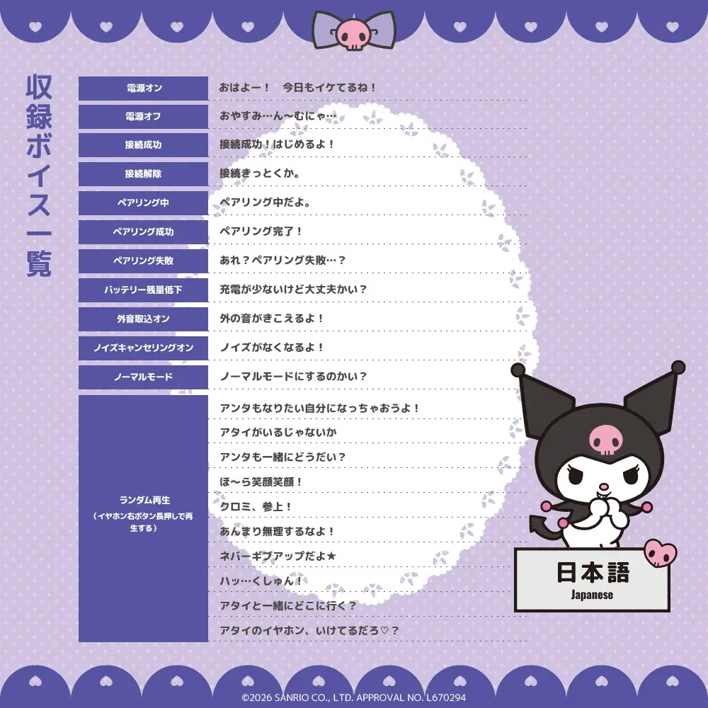 さらに各モデルには日本語 / Englishの2モードを搭載し、専用アプリから自由に切り替え可能です。音声は「シナモロール」「クロミ」それぞれの世界観に合わせた内容で、日常の使用シーンに彩りを加えます。