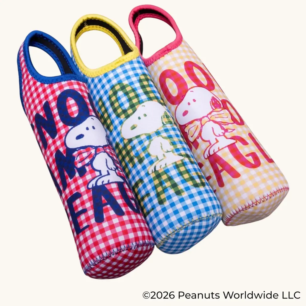カバン内の結露を防ぐ「ウエット素材ペットボトルカバー SNOOPY(チェックロゴ)」