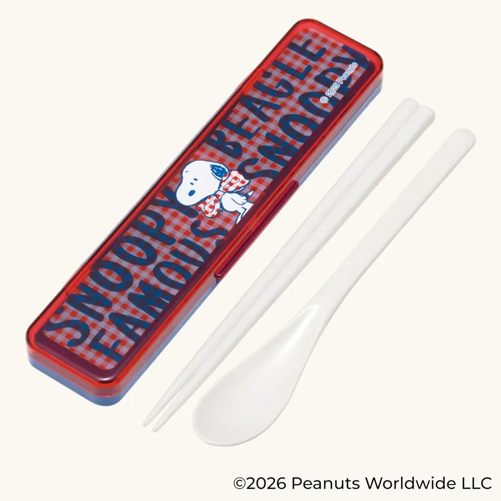 音を抑える「音の鳴らないコンビセット ハシ18cm SNOOPY(チェックロゴ)」