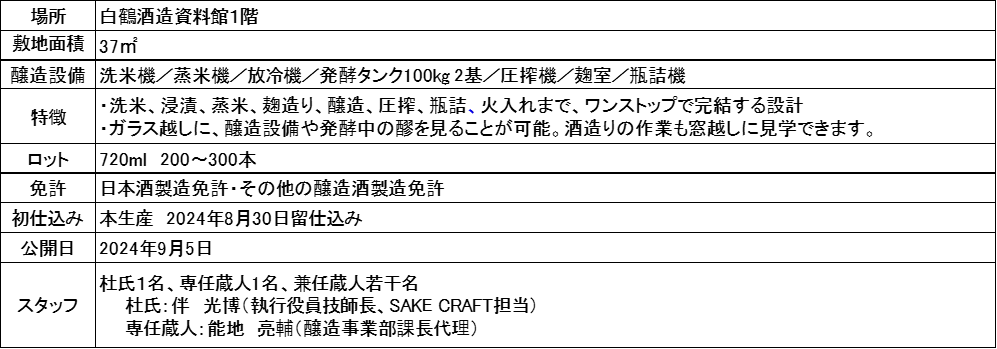将来的にはオーダーメイドSAKEの受注や他業種とのコラボレーションといった取り組みも検討されており、HAKUTSURU SAKE CRAFTならではの可能性を追求する拠点として運用されています。